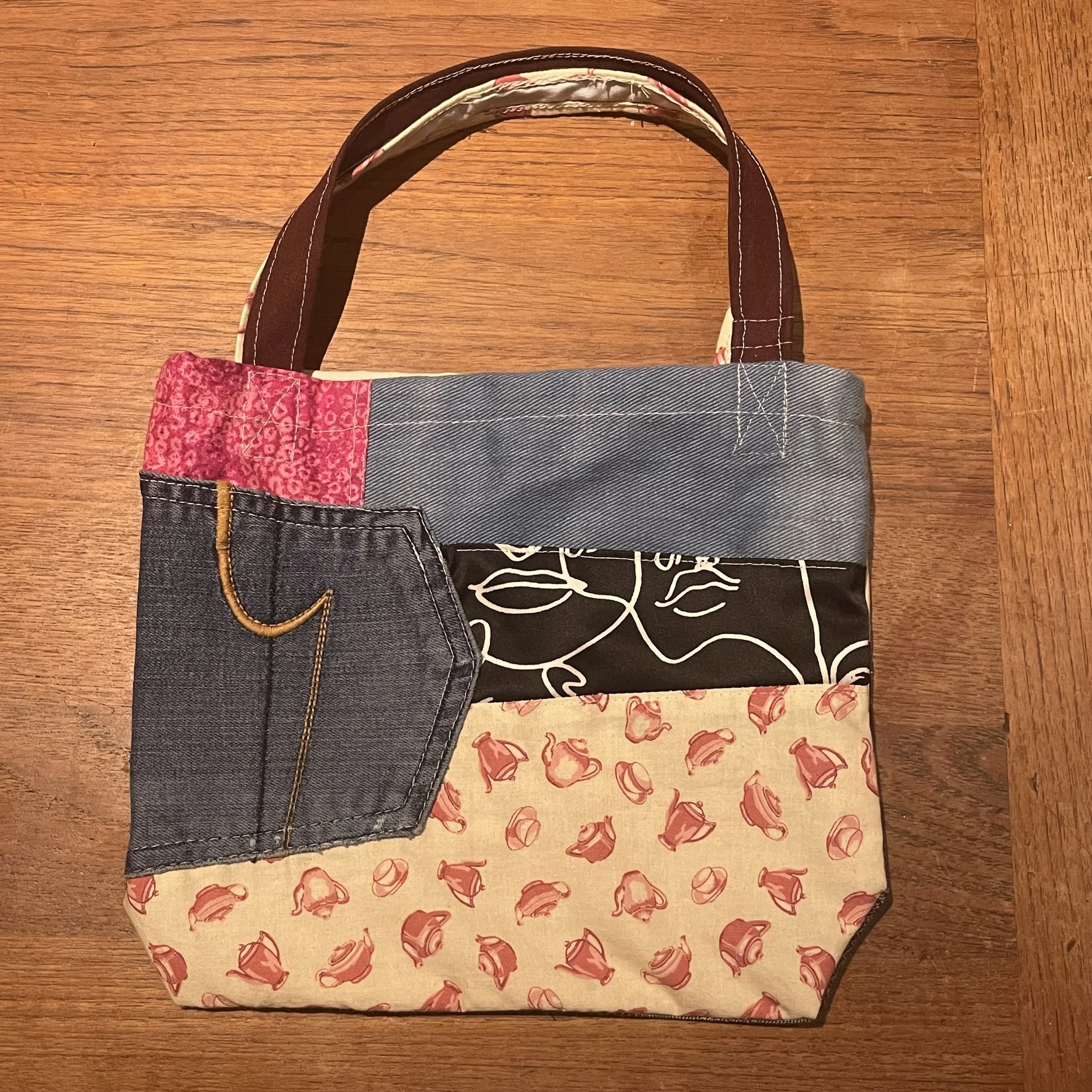 Working with discarded scrap fabric, Jackie also partakes in upcycling to make different types of bags. Material that would have gone into landfills was given new life in the form of totes, clutches, and handbags.